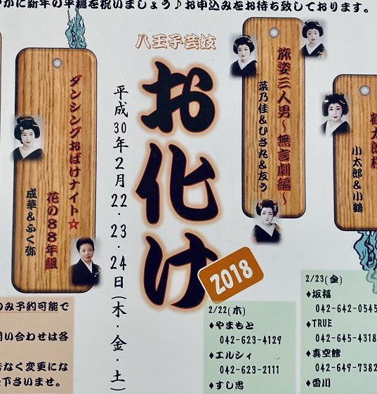 2018年 今年も毎年の恒例八王子花柳界の行事になりました【お化け】イベントのご案内です。
